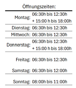 Öffnungszeiten: